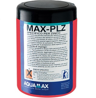 Koncentrált, nagyhatású vízkőoldó por horganyzott felületek vízkőmentesítésére. A por tartalmaz egy speciális pH indikátort, melynek színe megváltozik pirosról sárgára, narancssárgára, ha az aktív folyadék elveszíti hatását. MAX PLZ utántöltésével ismét aktívvá tehetjük az oldatot. A szer tartalmaz habzásgátló, korrózióvédő összetevőt, és egy specifikus cink inhibitort, mely megvédi a rendszer fémes felületeit.