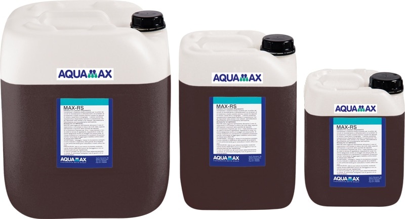 Lúgos kémhatású koncentrátum. A hűtő és fűtő rendszerek belsejében képződő vízkő, vasoxid iszap és egyéb lerakódásokat eltávolítja. Ezek a lerakodások üzemzavarokat okoznak. Ahhoz, hogy a rendszer visszanyerje eredeti, üzemzavar mentes állapotát az Aquamax a MAX RS helyreállító termék használatát javasolja.