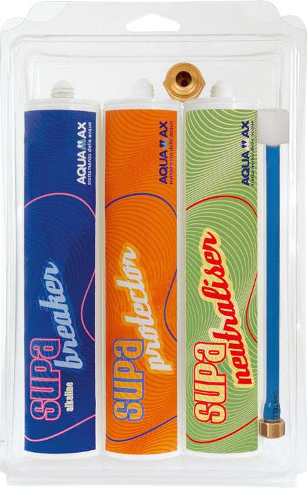 SUPA KIT10.112.020Fűtési rendszer helyreállító készlet ( 1db Supa Breaker, 1 db Supa Protector, 1 db Supa Neutraliser, 1 db sárgaréz szelep, 1 db műanyag cső)1